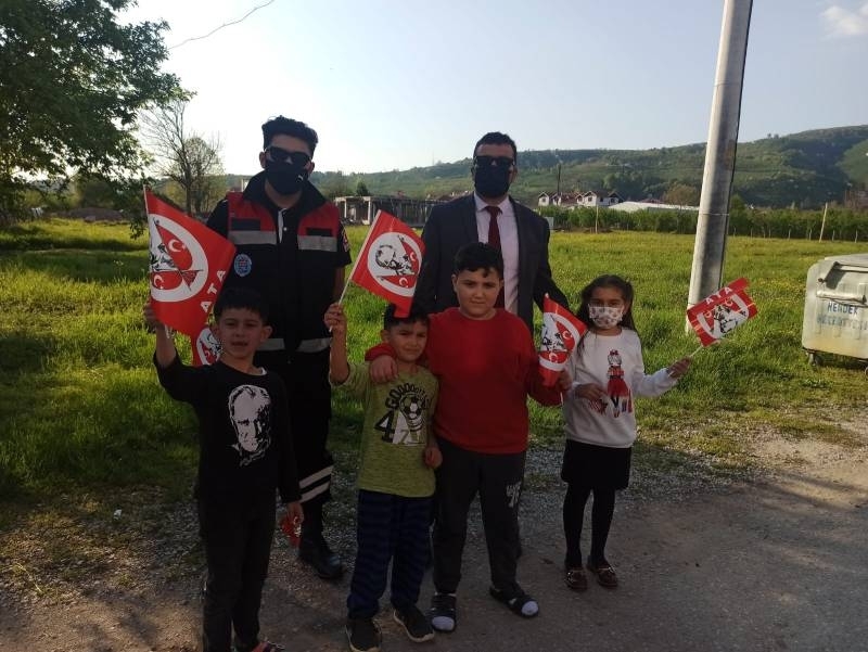 Hendek Sarıdede, Mahmutbey, Başpınar, Nuriye, Akpınar, Köprübaşı Mahallelerinde sokaklarda ve bahçelerde oynamakta olan çocuklara, balon, Türk bayrağı gibi çeşitli materyaller hediye ederek 23 Nisan Ulusal Egemenlik ve Çocuk Bayramlarını kutladılar.